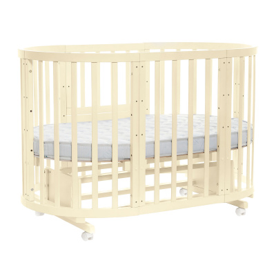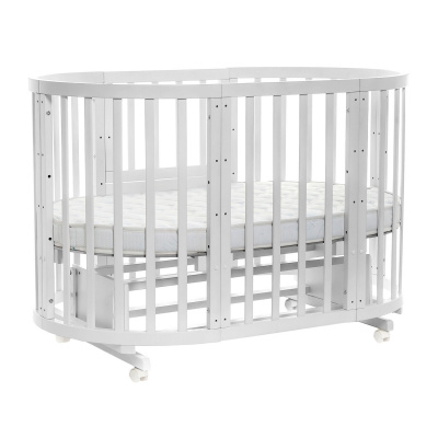 Для новорожденного кроватка-трансформер Noony Cozy послужит уютной круглой колыбелькой. Поперечный маятник поможет мамочке, не прилагая лишних усилий, убаюкать ребенка, а если в укачивании нет необходимости, то его можно надежно зафиксировать. При этом из других частей конструкции можно собрать столик, на котором удобно пеленать младенца.