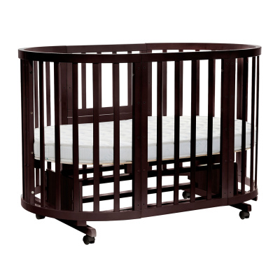 Съемная передняя стеночка позволяет сделать такую кроватку приставной или превратить в детский диванчик. Когда малыш подрастёт, колыбель трансформируется в овальную кроватку или манеж. Для удобства перемещения по квартире Noony Cozy снабжена колесами, которые имеют надежные стопоры, при необходимости колеса легко снимаются. Одна из трансформаций способна создать полноценную детскую игровую зону из двух кресел и столика.